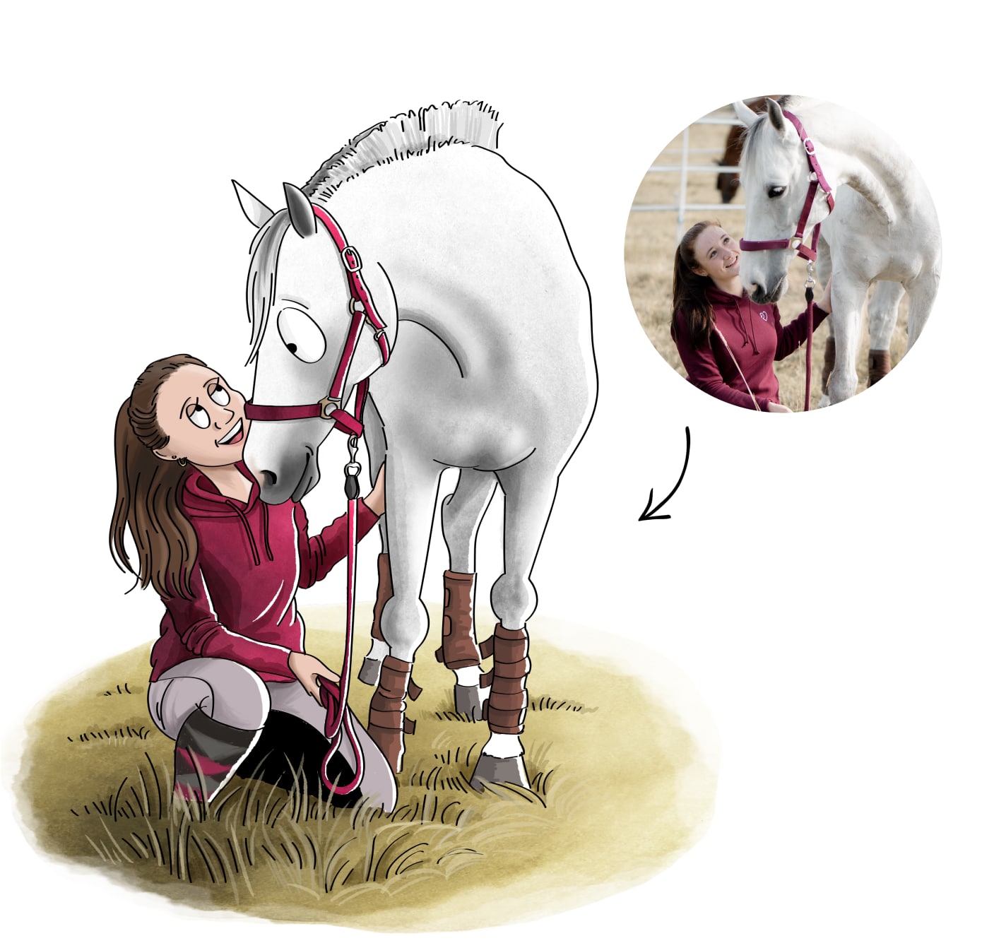 Wir machen dein Pferd zum Star: In einem liebevoll handgezeichneten Unikat mit ganz viel Charme – im typischen mrs. RIDE-Stil. Einfach Lieblingsfoto hochladen, Wunschname eingeben und unsere Gründerin Nadja verwandelt deine Fellnase in dein ganz persönliches Unikat für die Ewigkeit.