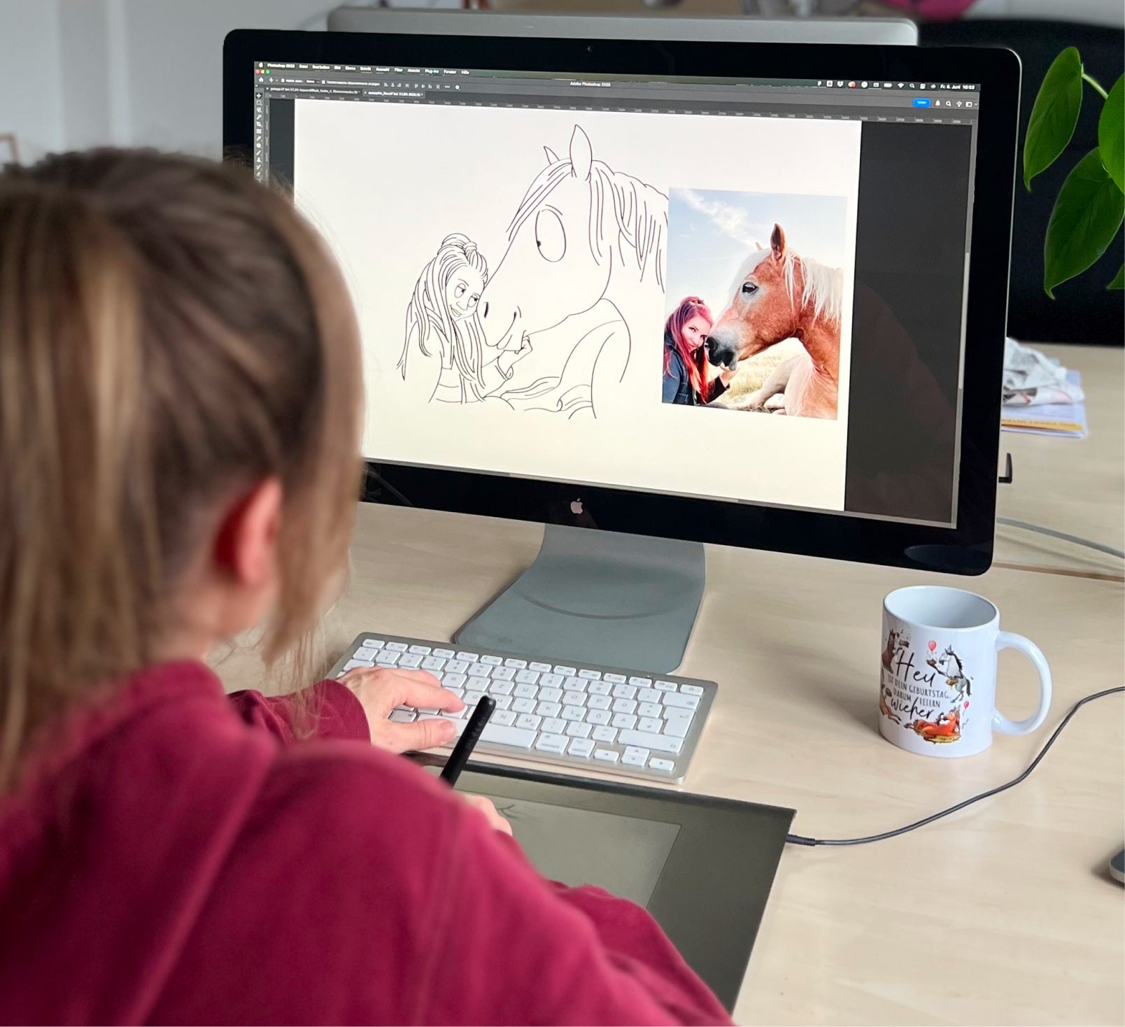Ob Familienfoto oder Foto mit Stallfreunden: Wir verewigen euch in einer originellen Illustration mit ganz viel Herz und Charakter. Einfach Lieblingsfoto hochladen, Wunschnamen eingeben und unsere Gründerin Nadja verwandelt dein Foto in euer ganz persönliches Unikat à la mrs. RIDE. Du erhältst deine Zeichnung als hochauflösenden Download und optional auf deiner neuen Lieblingstasse. Eine Erinnerung für die Ewigkeit und perfekt auch als Geschenk.